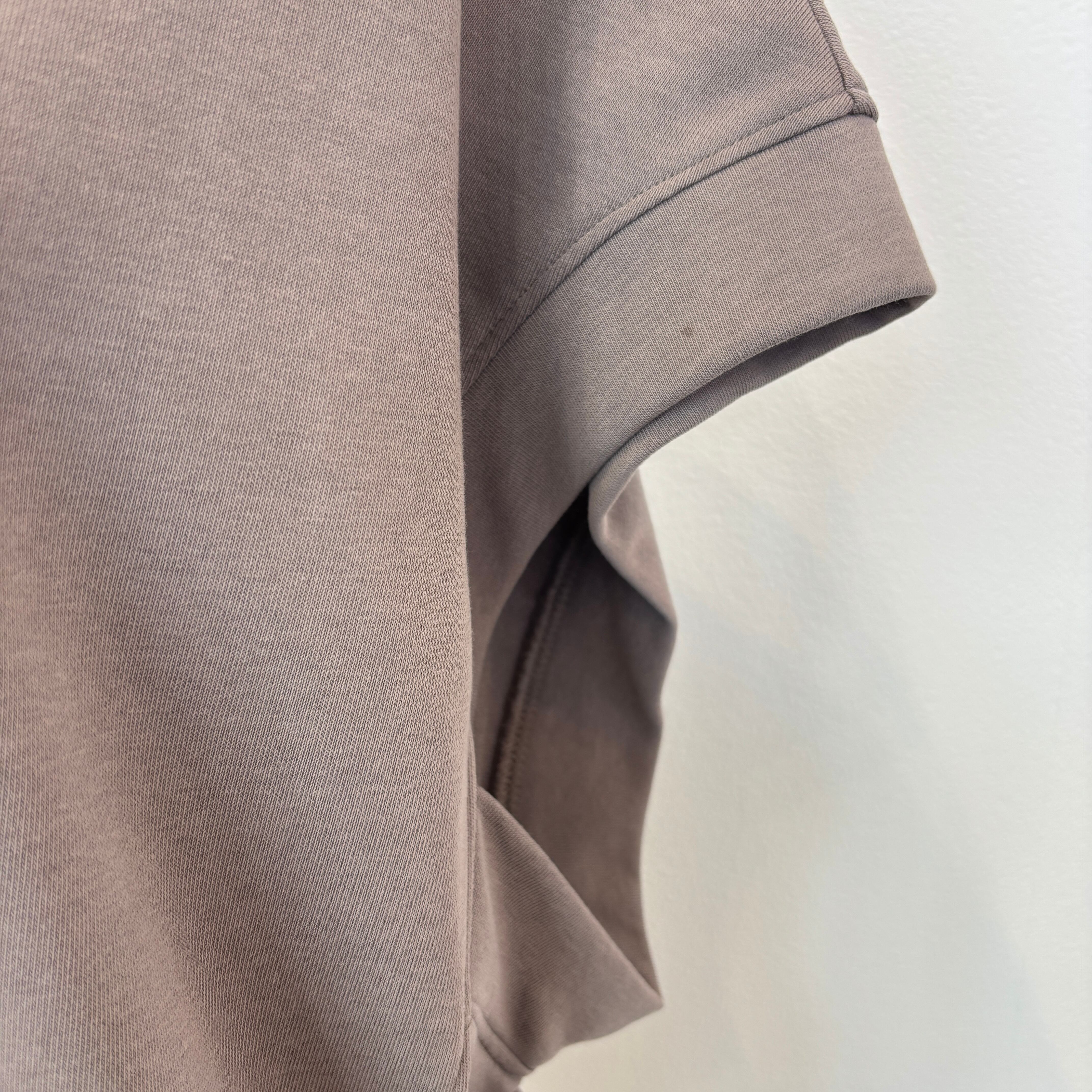 ゆったりとしたシルエットと アームホールの抜け感が体型をカバーし こなれ感あるスタイリングに映します! 単品で着用したり、レイヤードで着用したりと 様々なスタイルで楽しめます♪ 【素材】綿85% ポリエステル15% 【カラー】モカ、チャコール 【サイズ】38 フリーサイズ 裄(㎝)71/身幅64/着丈54/60