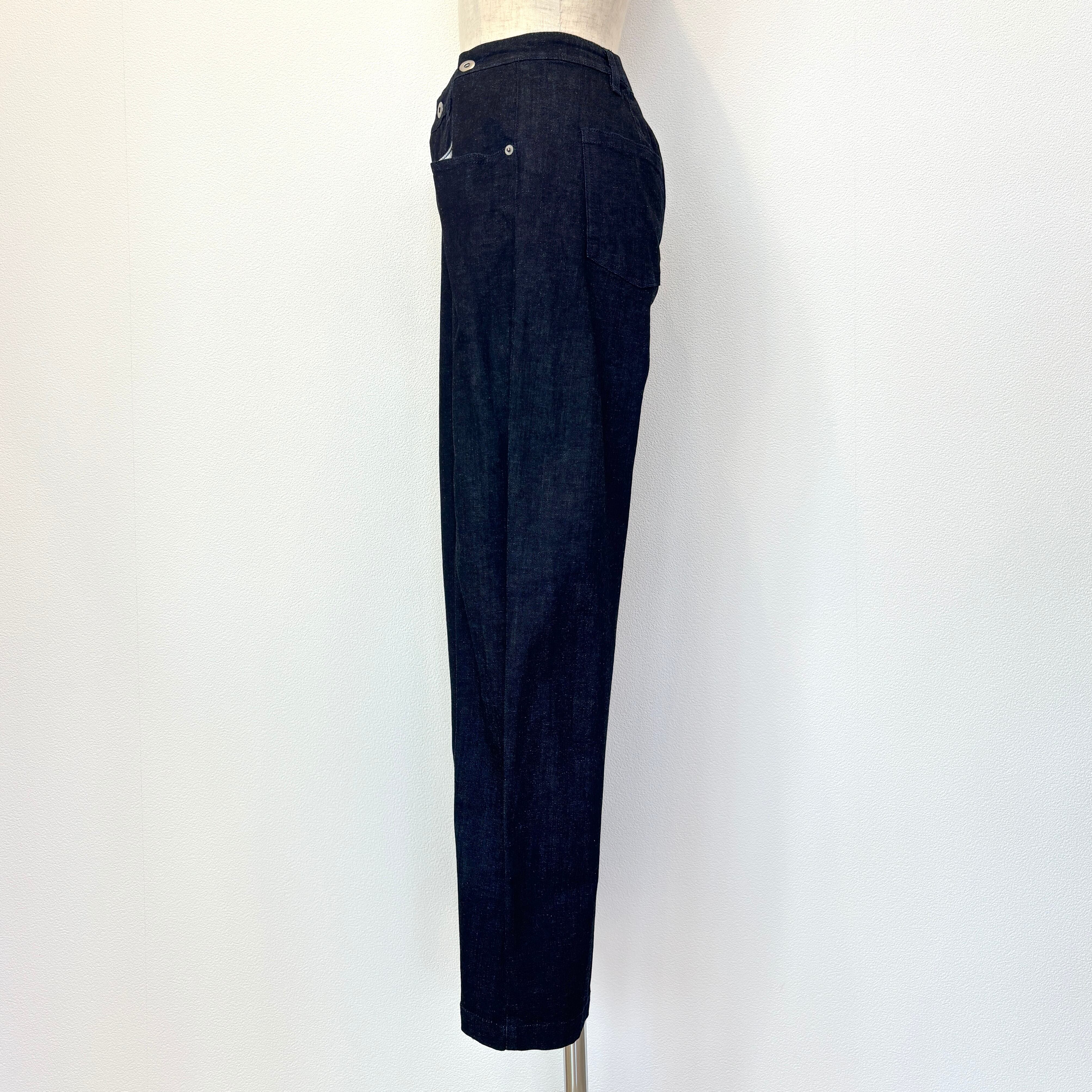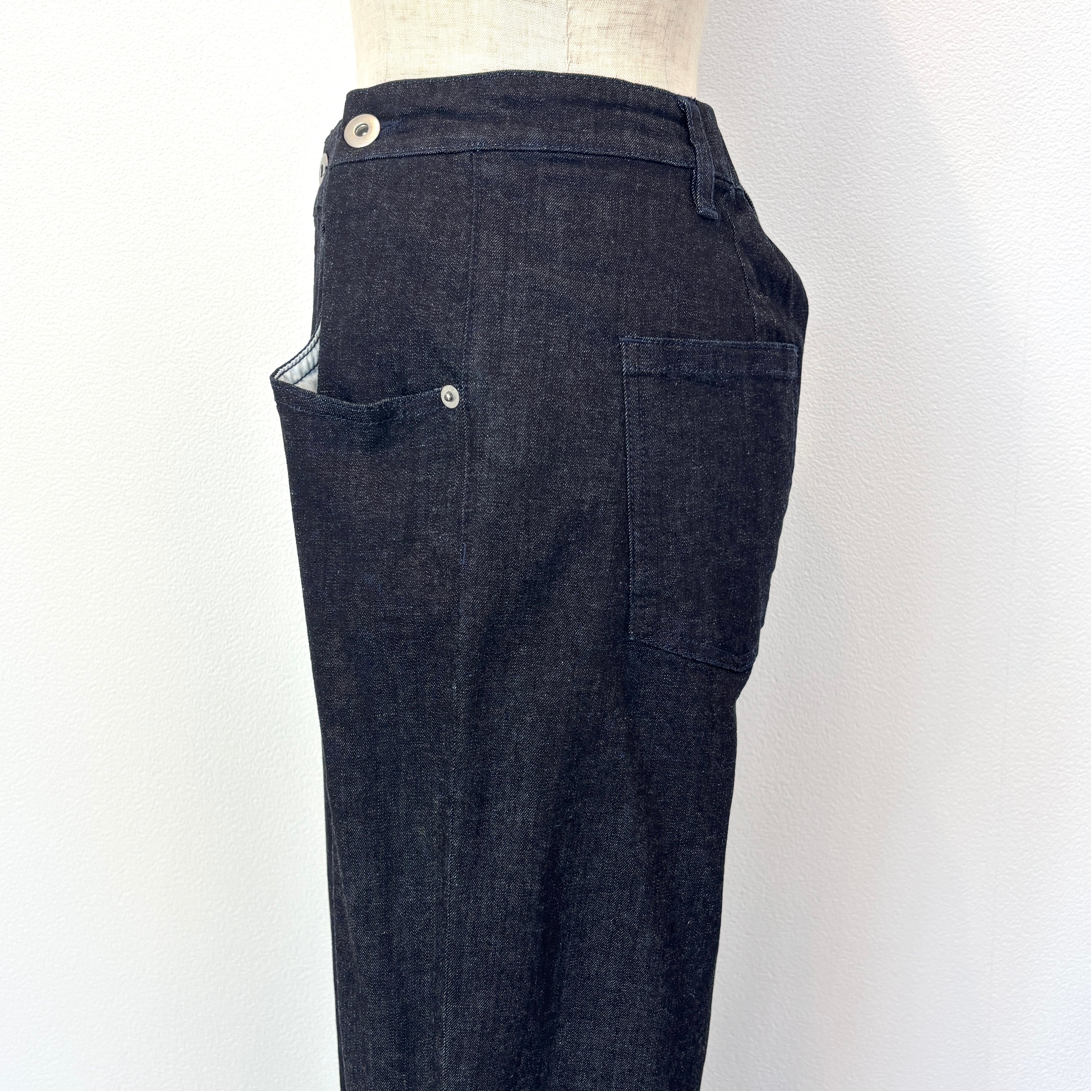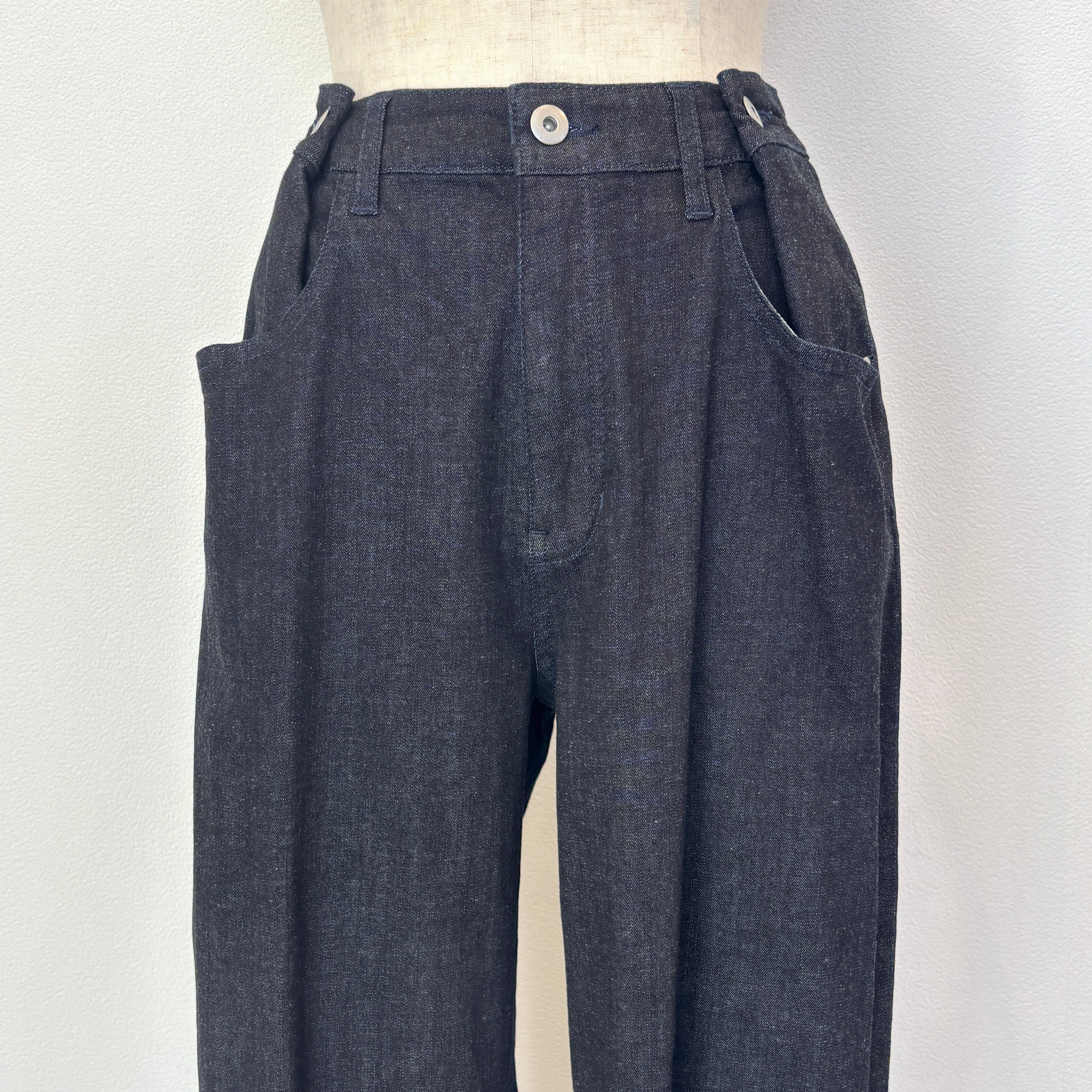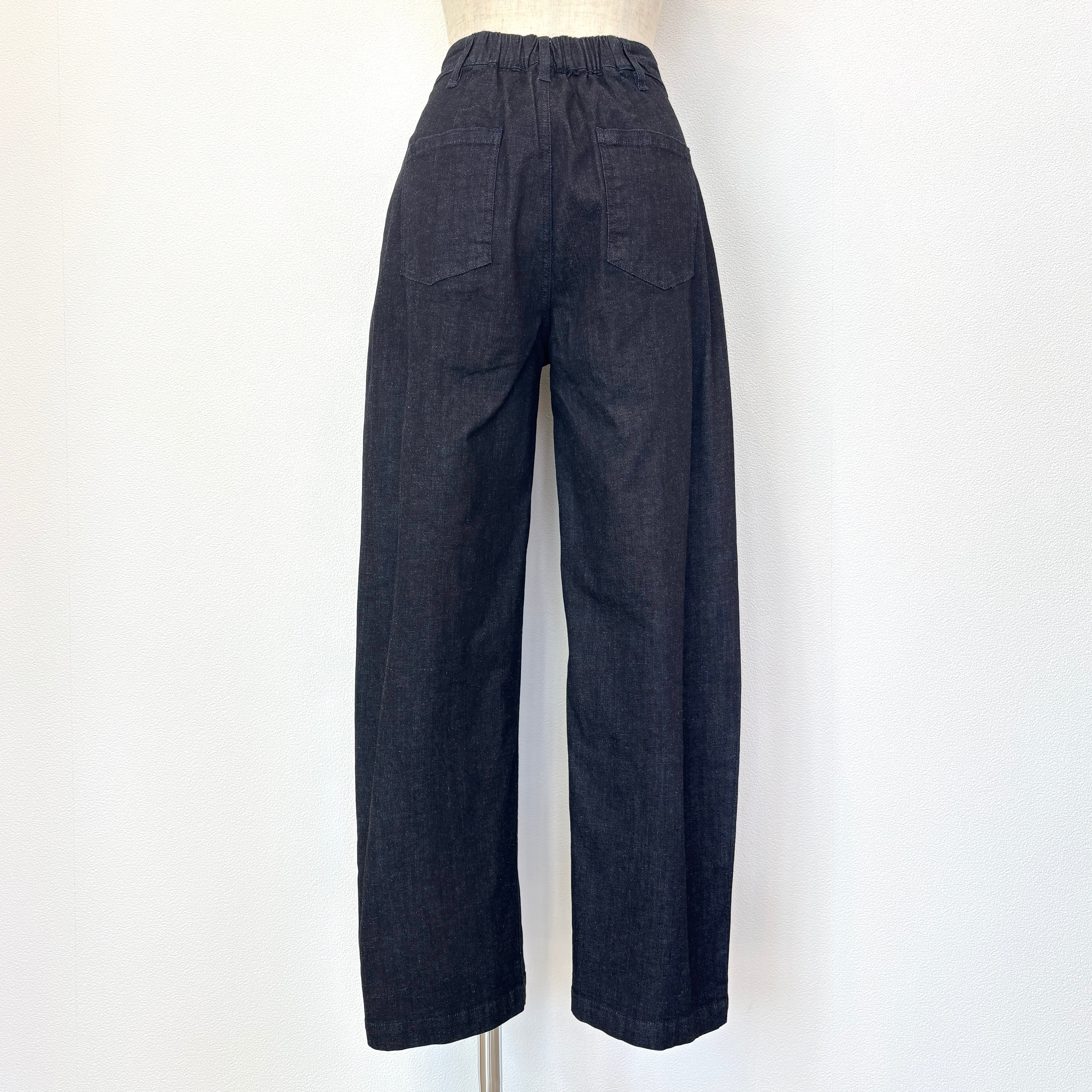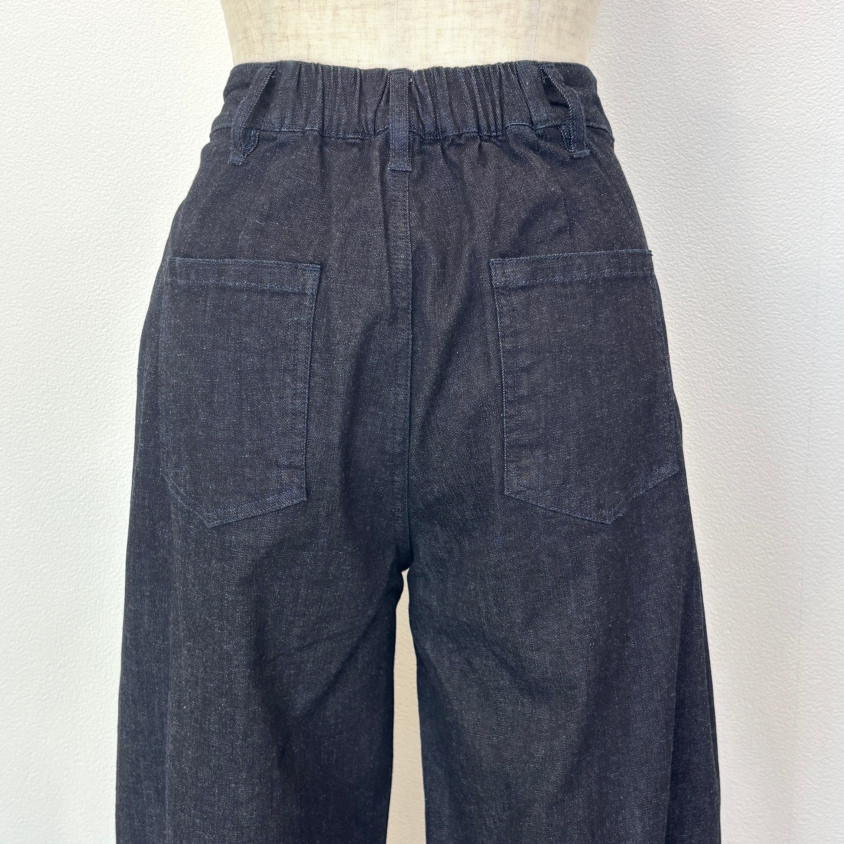 柔らかな生地のデニムでウエスト後ろはゴム仕様。