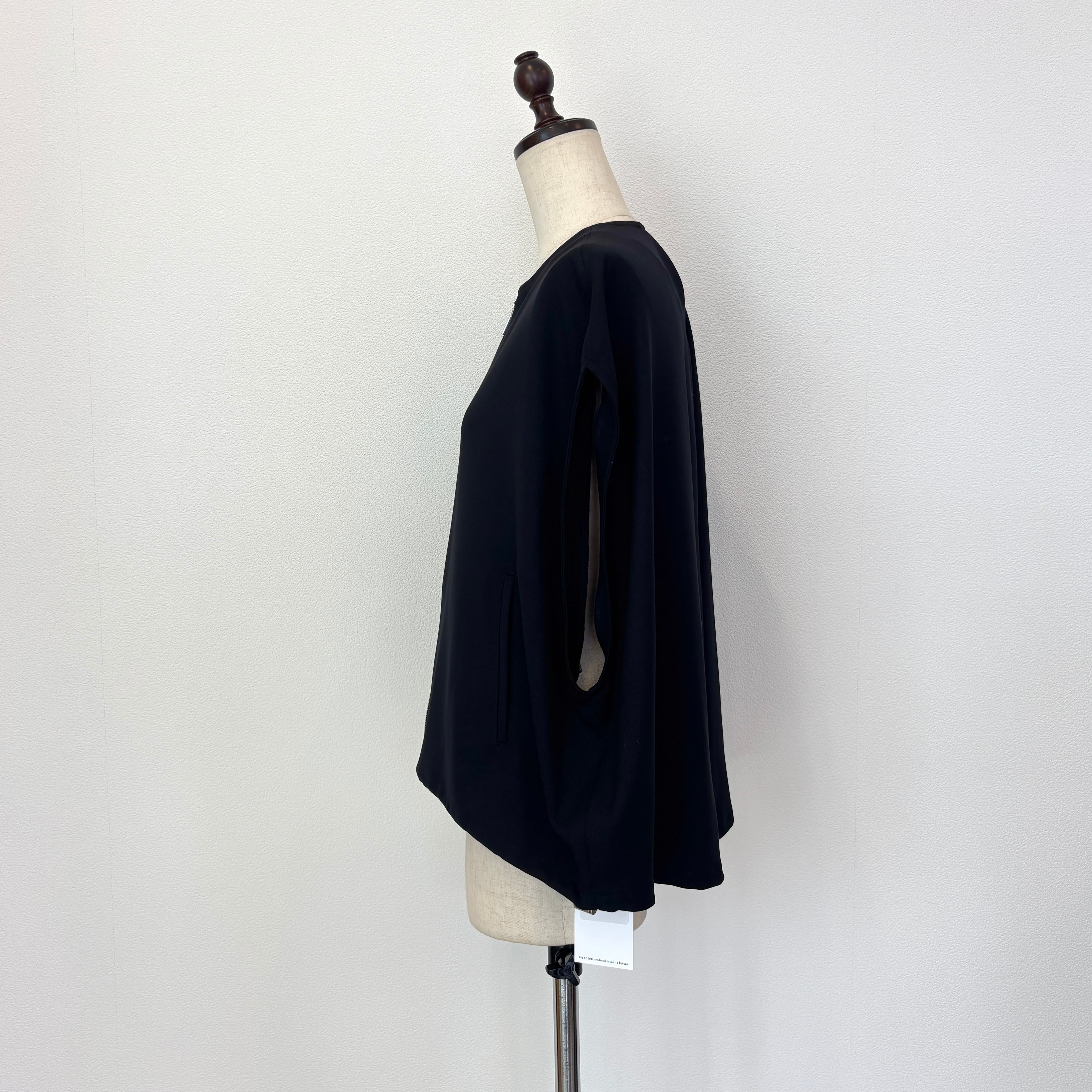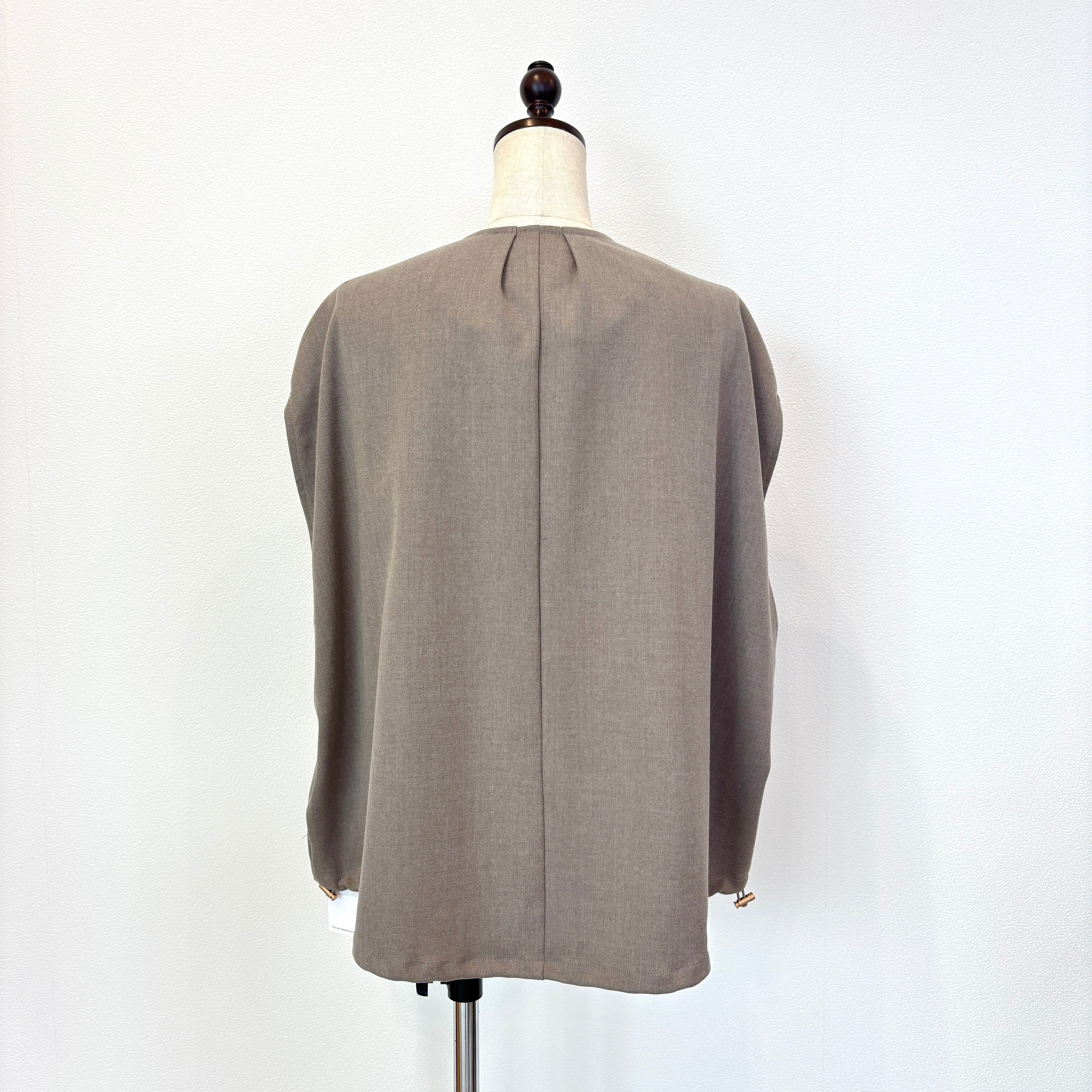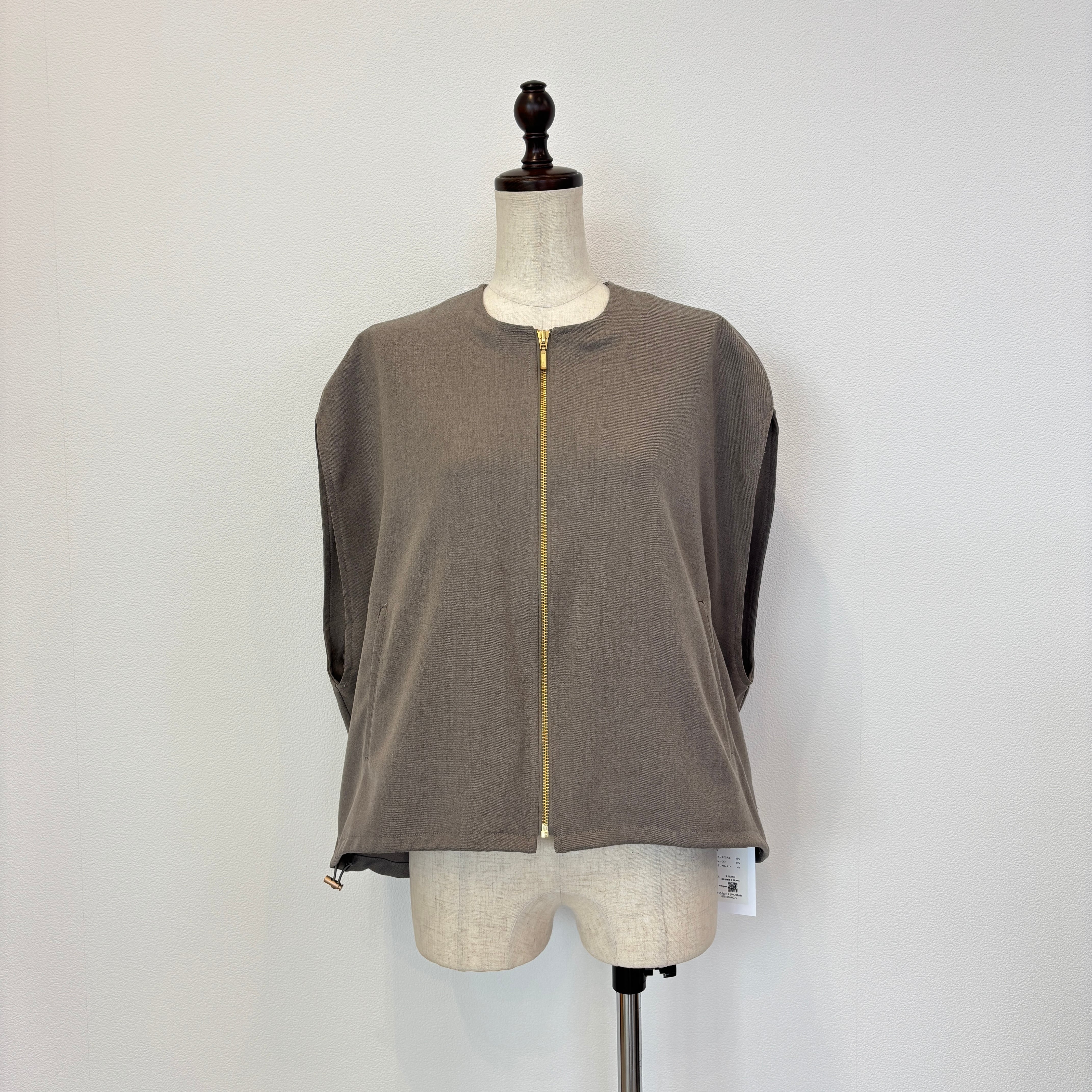 ゆったりとしたポンチョシルエットのベスト。 裾はゴムとドロストデザインで シルエットの変化も楽しめます! 微光沢のあるシワにもなりにくい、 きれいめ素材がカジュアルな中にも 上品さをプラスします♪ 【素材】ポリエステル63% レーヨン33% ポリウレタン4% 【カラー】モカグレー、ブラック 【サイズ】フリー 肩幅(㎝)60/身幅67/着丈55/63