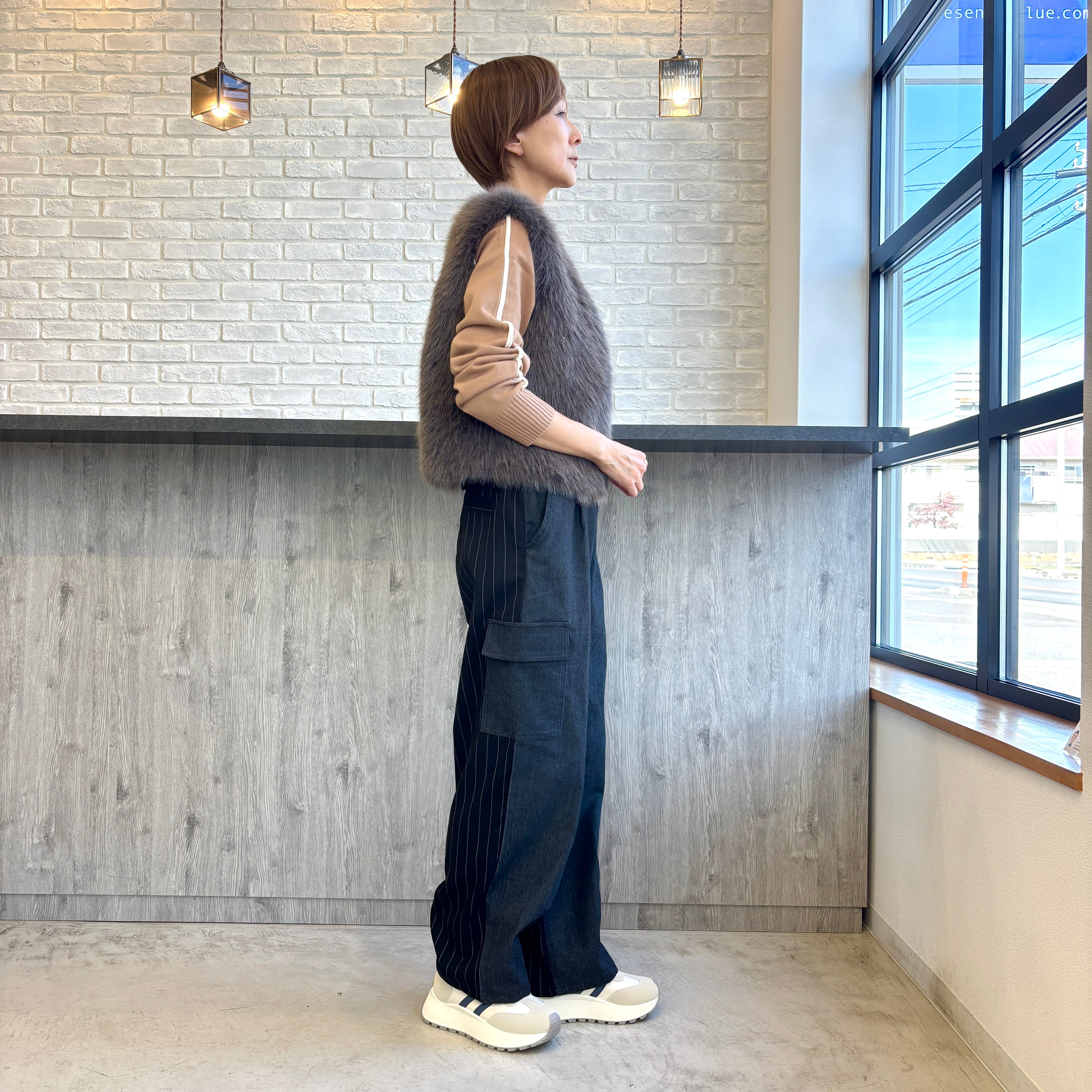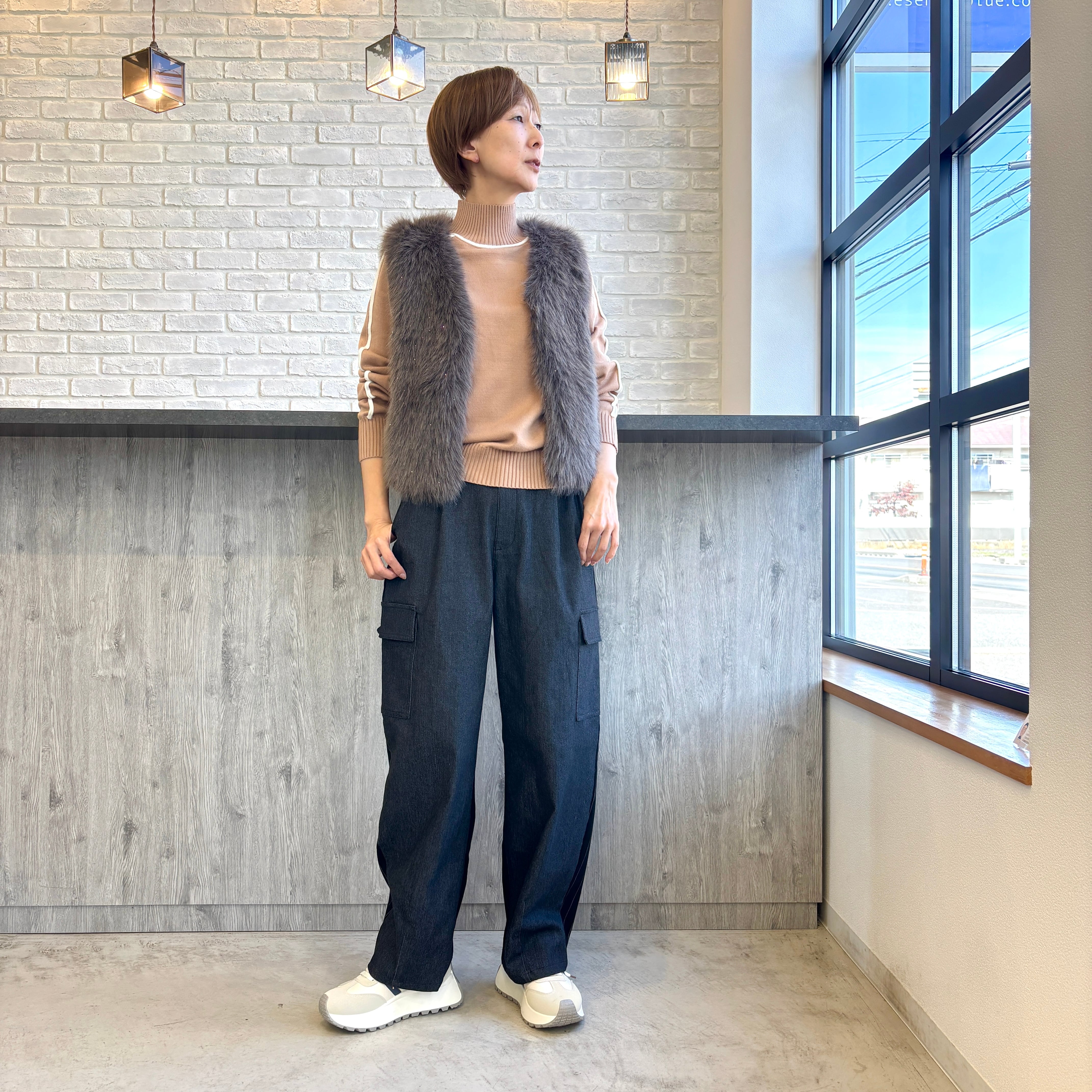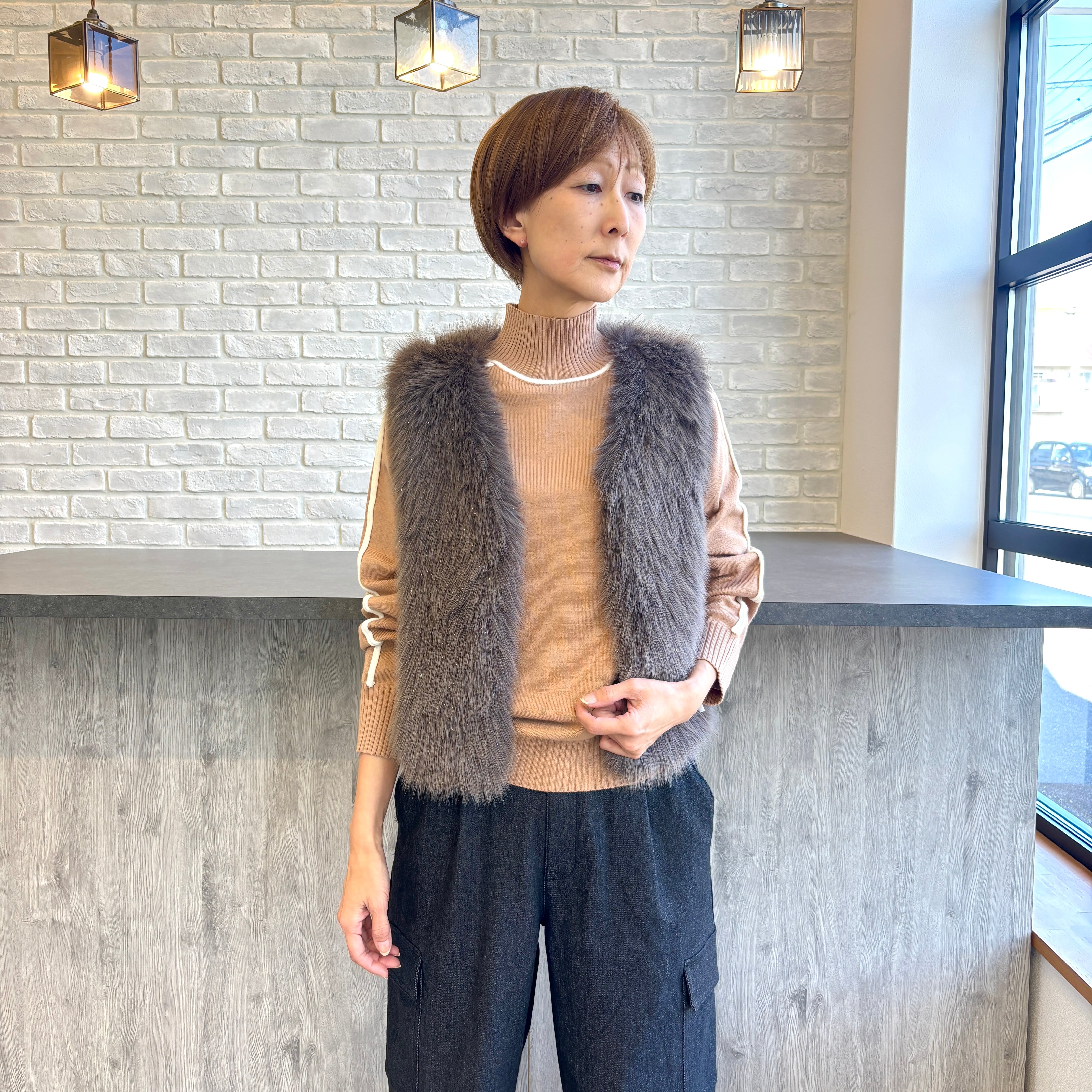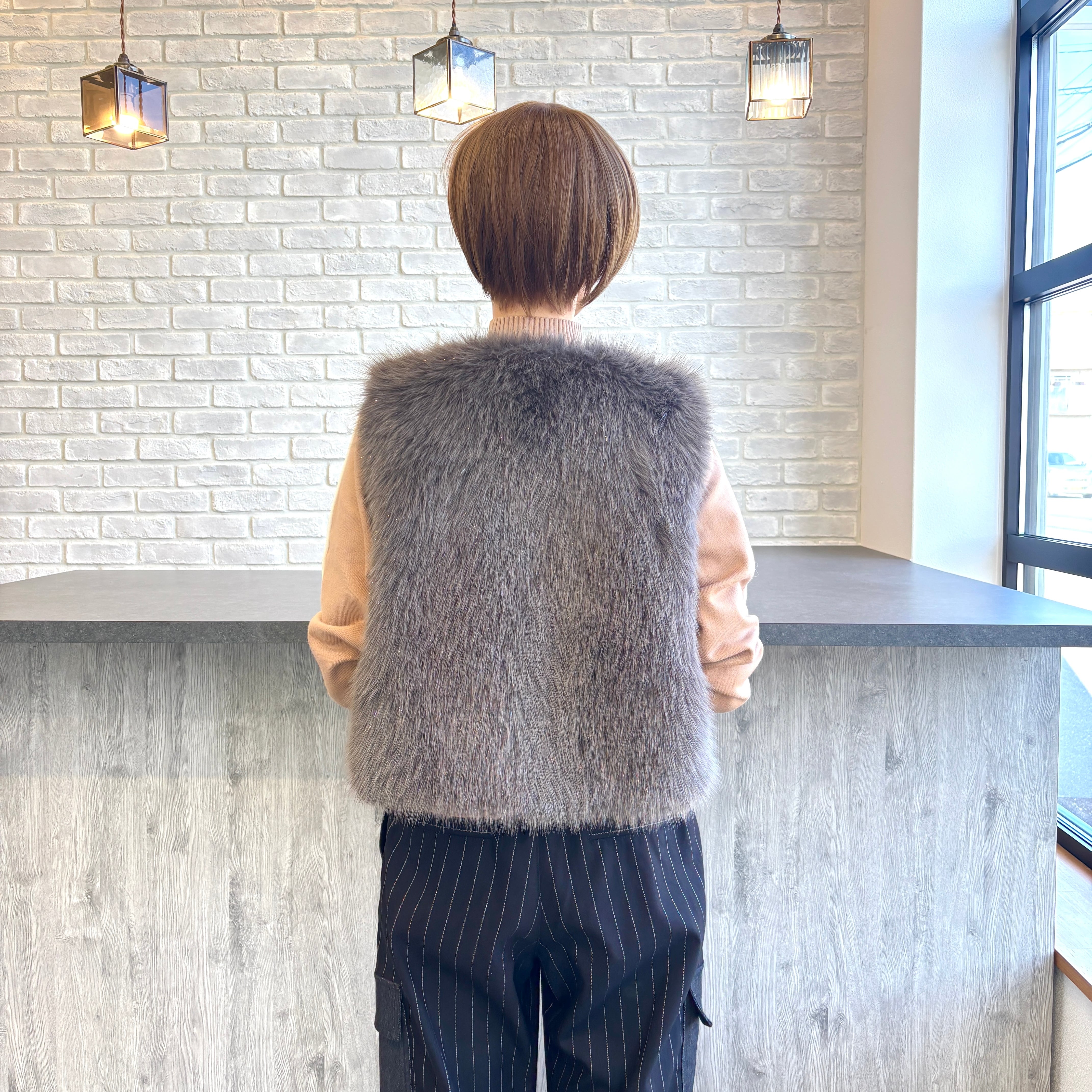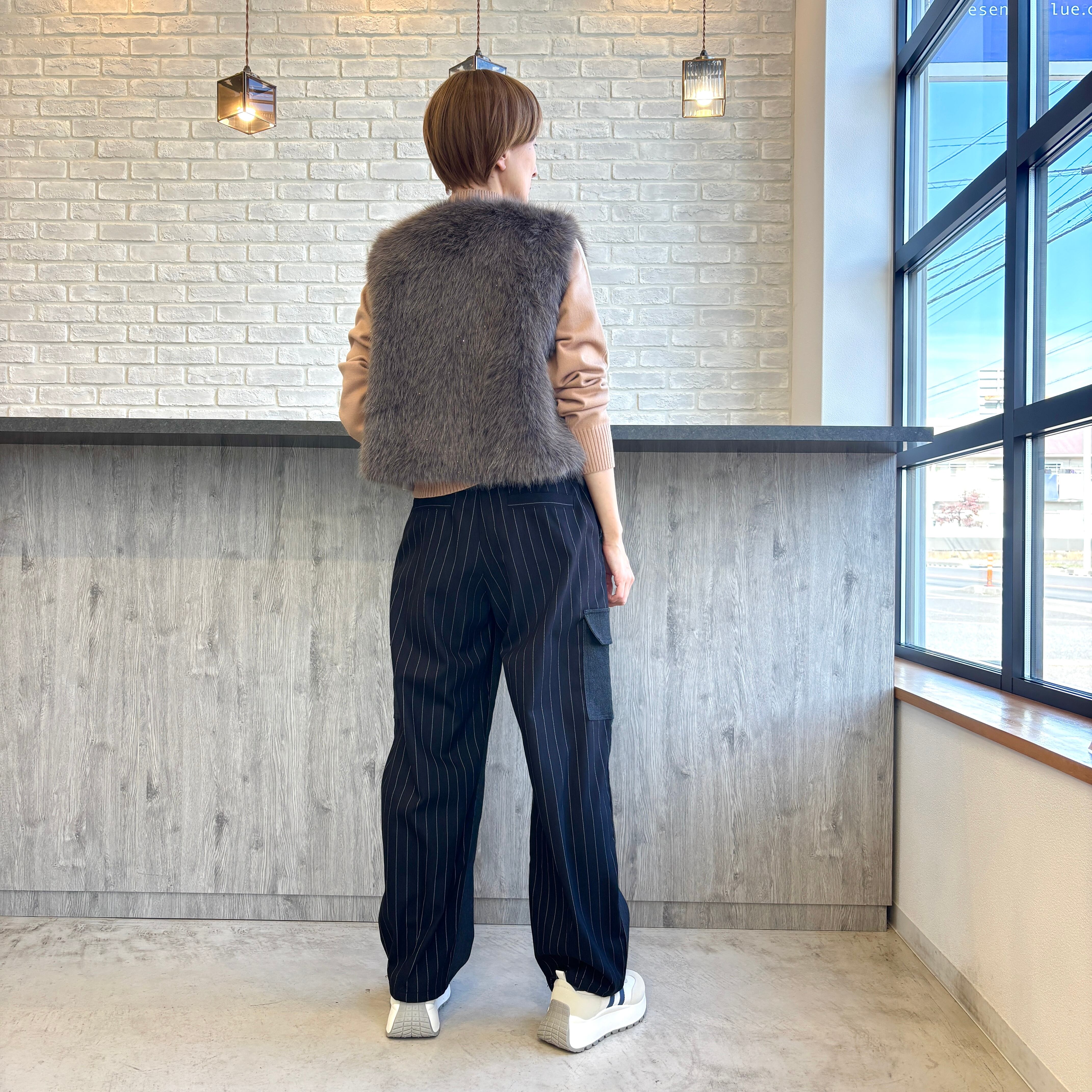 さりげなくキラキラしたラメのファーベスト。