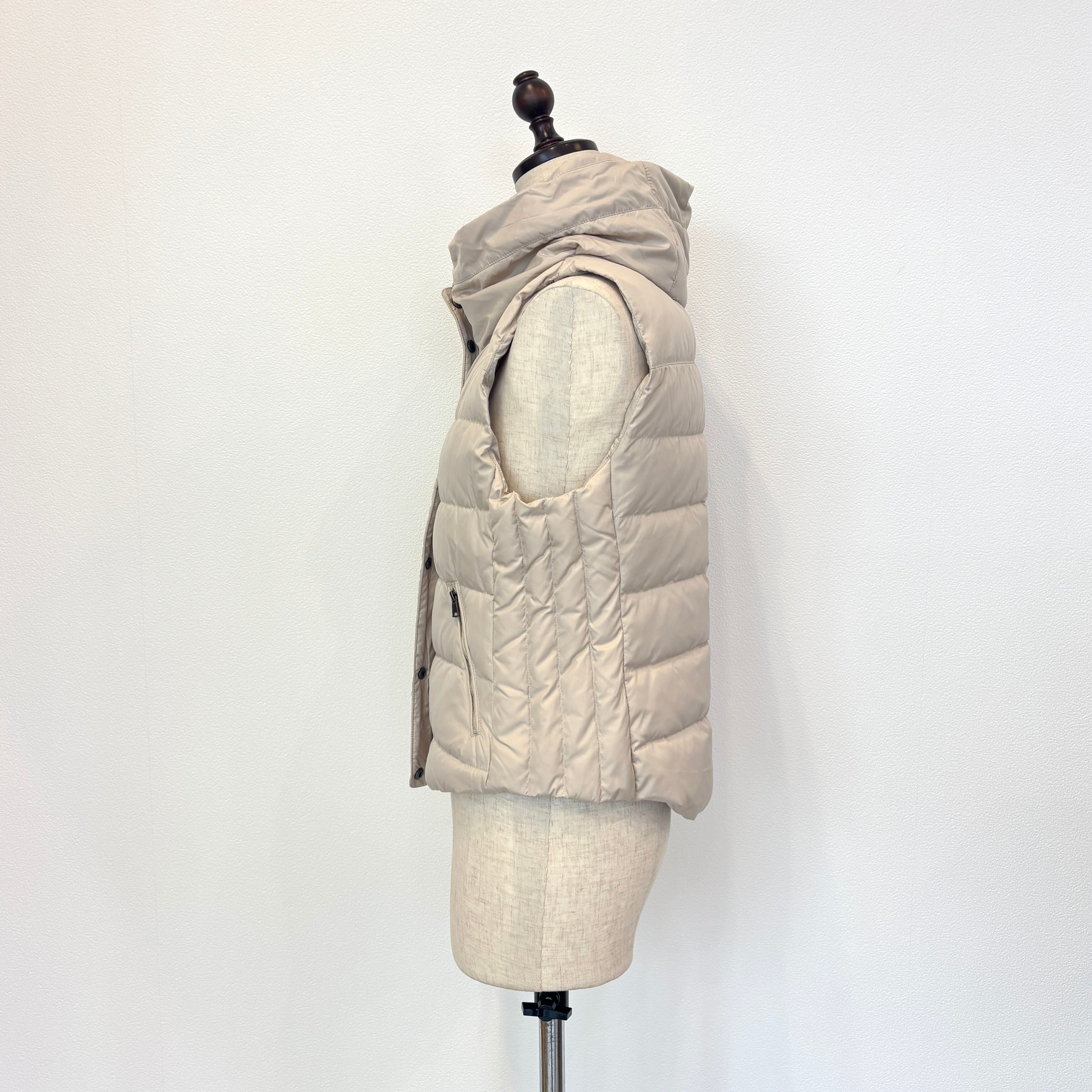 【素材】表地、裏地 ポリエステル100% 詰め物 ダウン80% フェザー20% 【カラー】ライトベージュ 【サイズ】38 肩幅(㎝)35/身幅42/着丈52