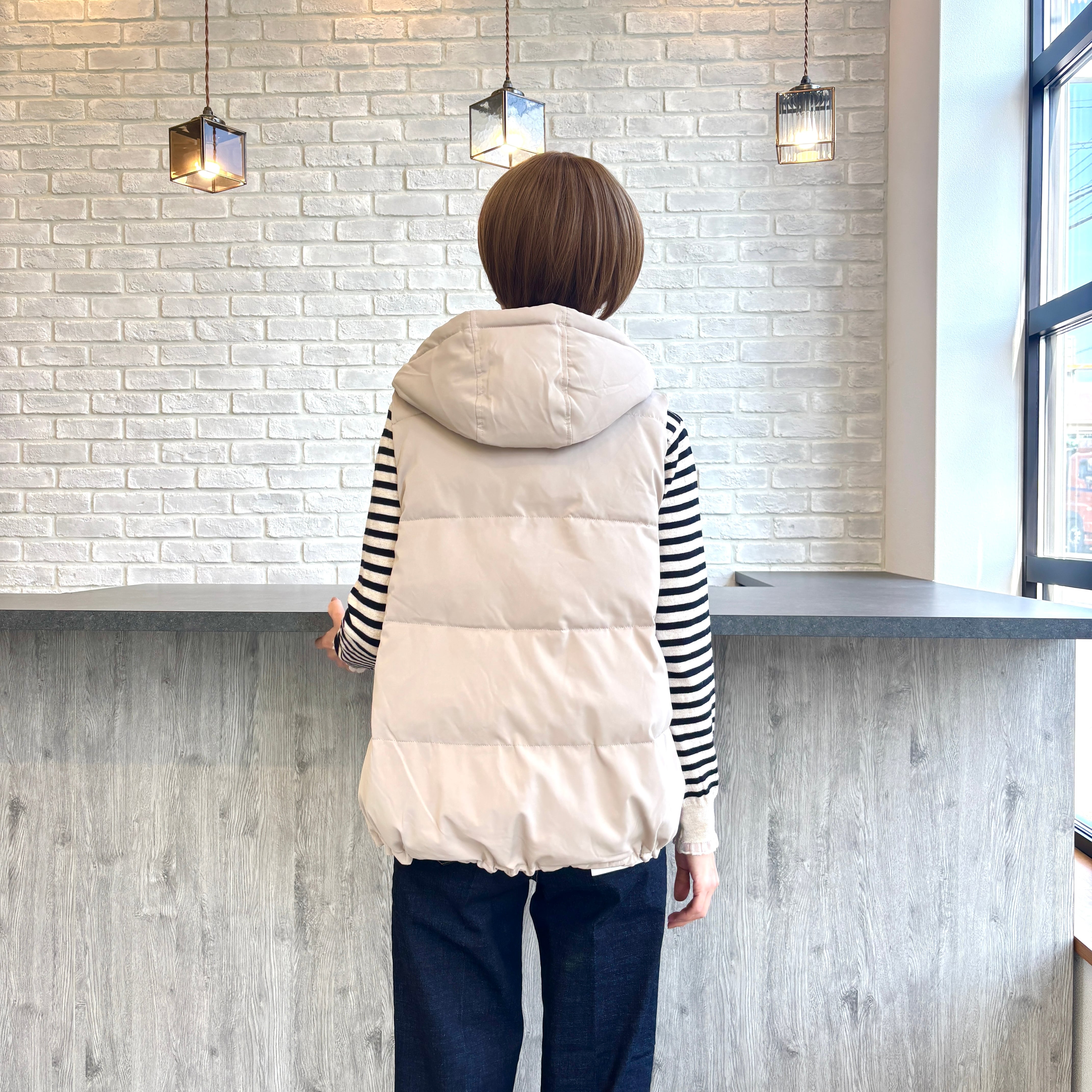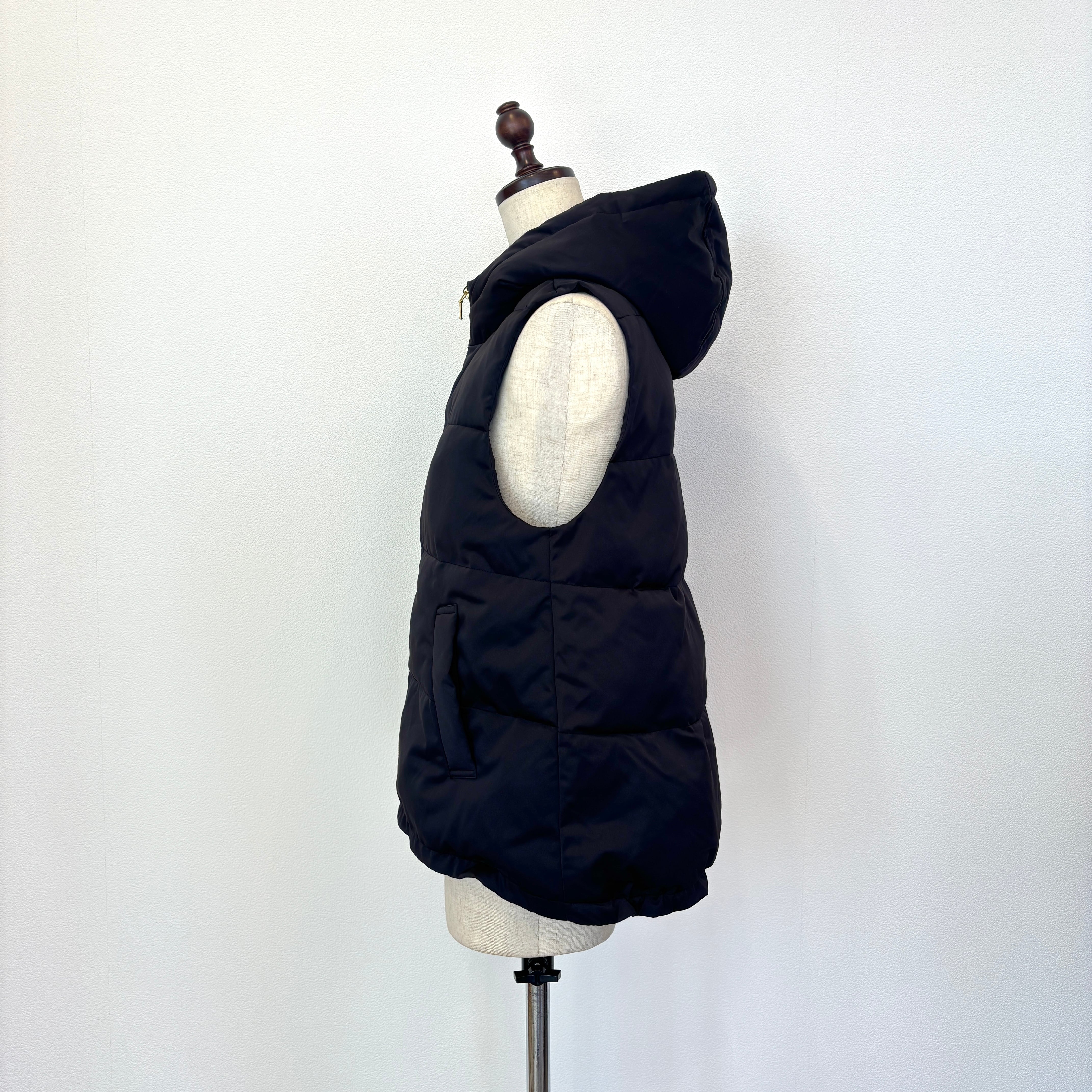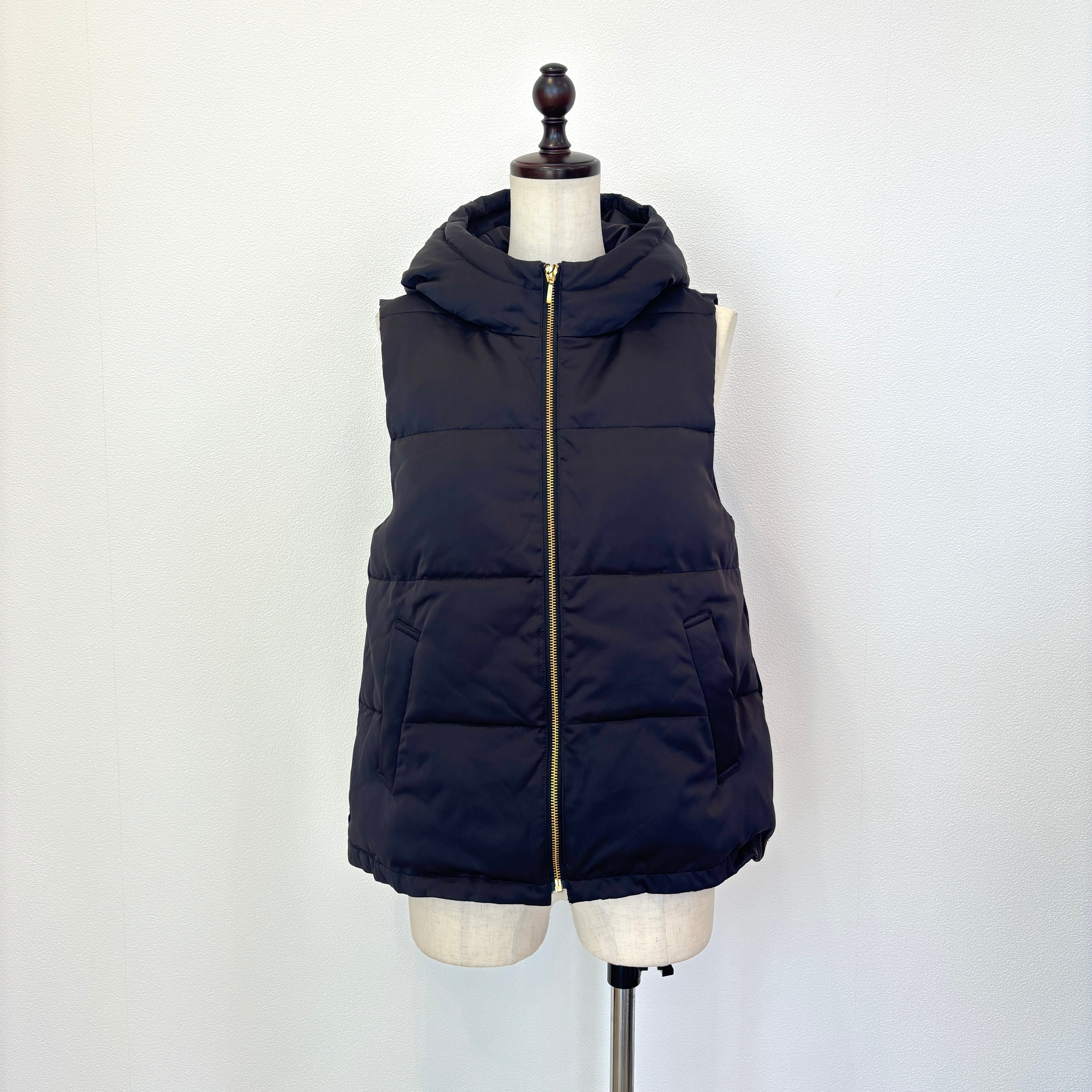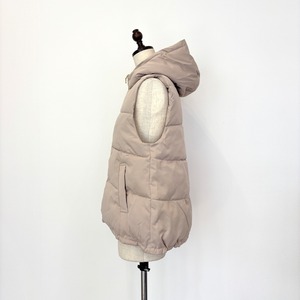 ふっくらと暖かみのある パールダウン仕様したベスト。 お尻にかかる程の着丈で 裾はギュッと絞れるドロスト仕様で すっきりとしたスタイリングが叶います! 春アウターとしても着用出来ます♪ 【素材】表地、裏地、詰物 ポリエステル100% 【カラー】ベージュ、ブラック 【サイズ】M フリーサイズ相当 肩幅(㎝)37/身幅50/着丈59/63