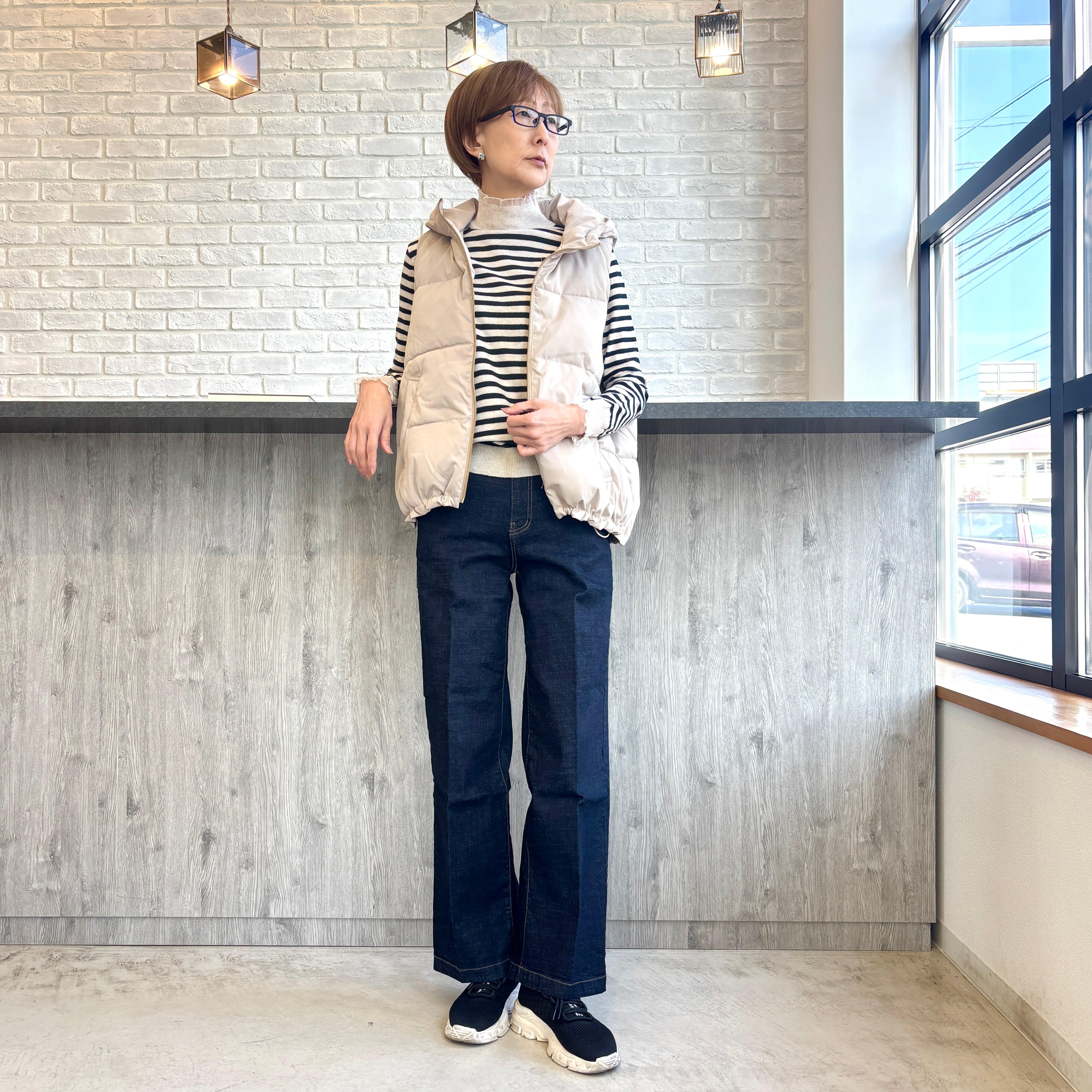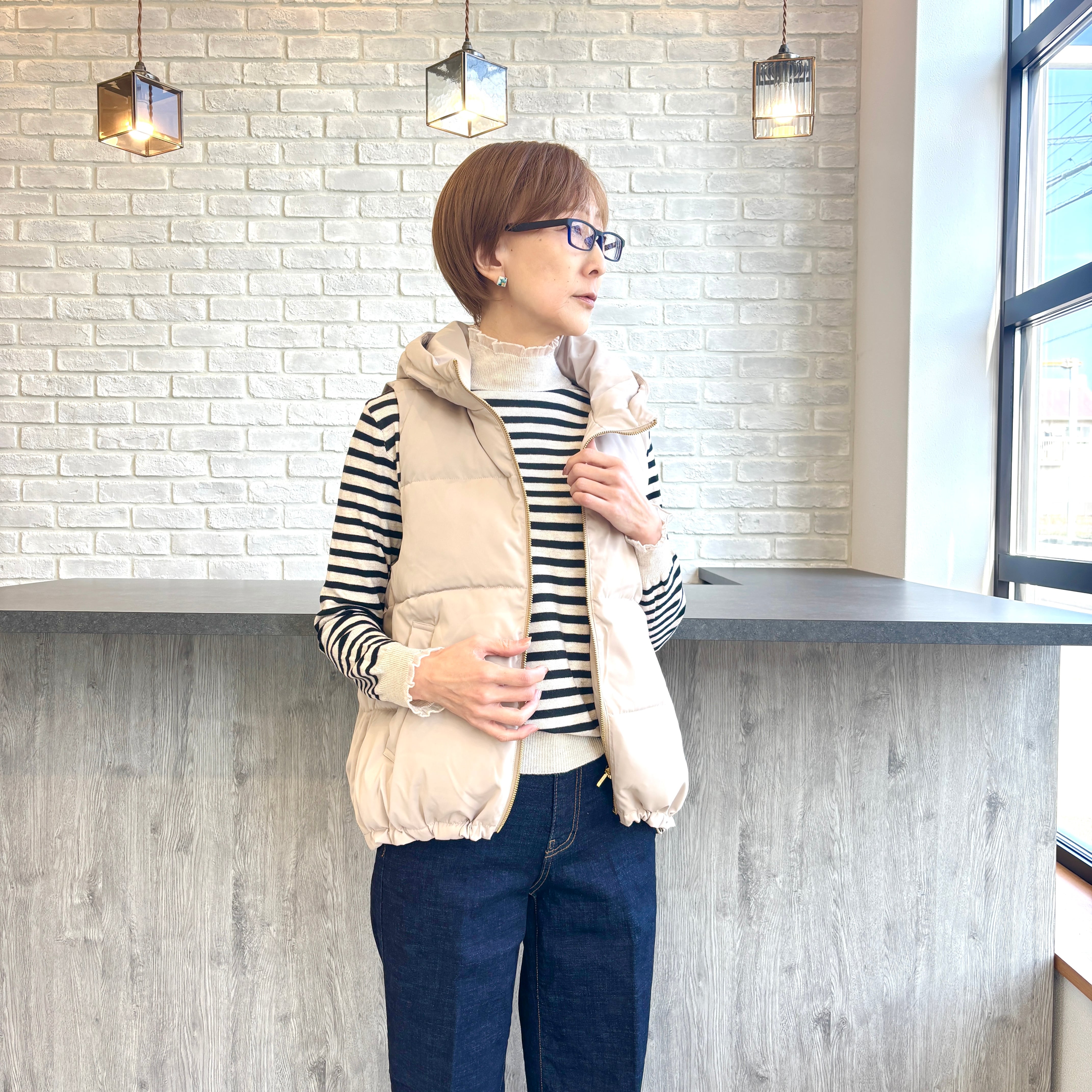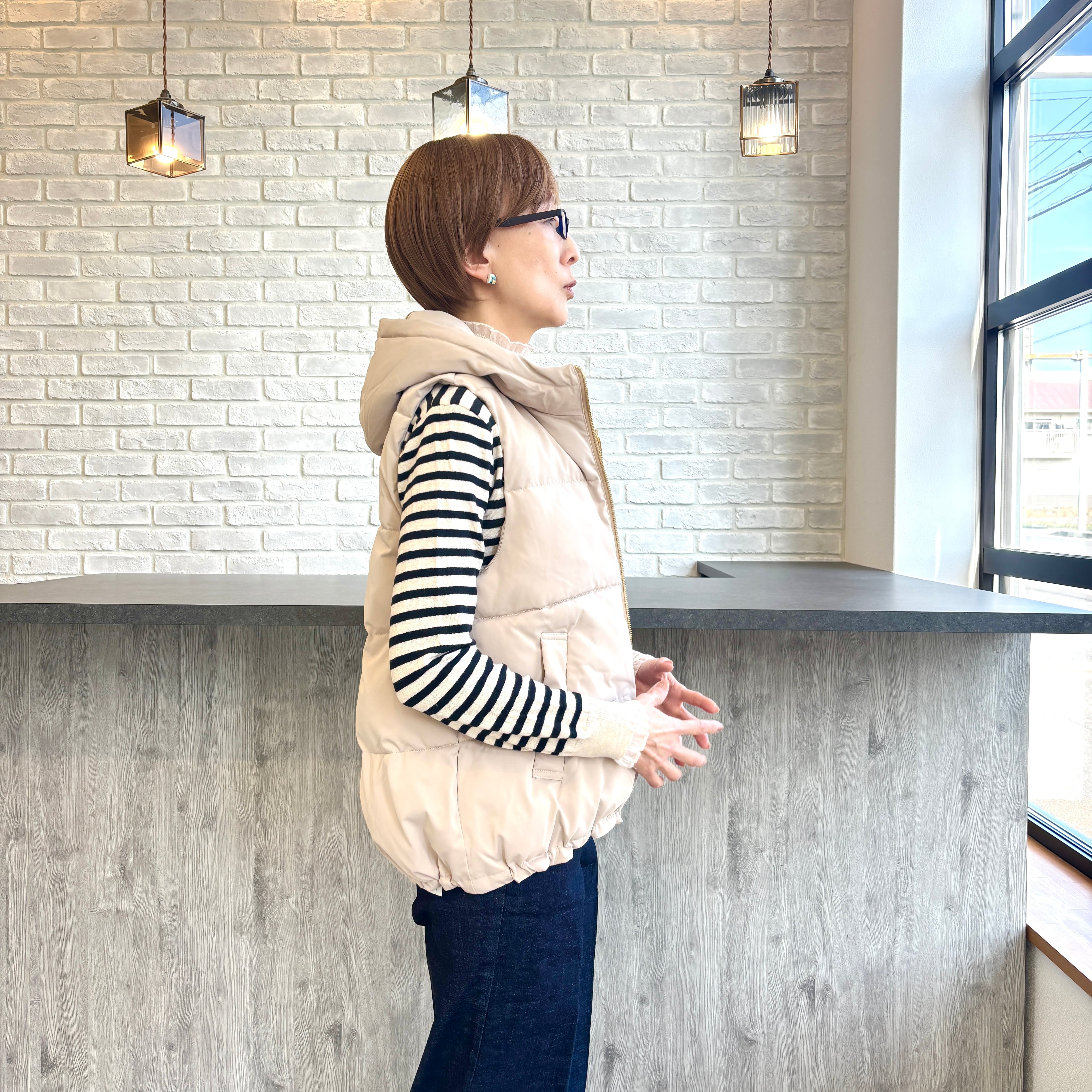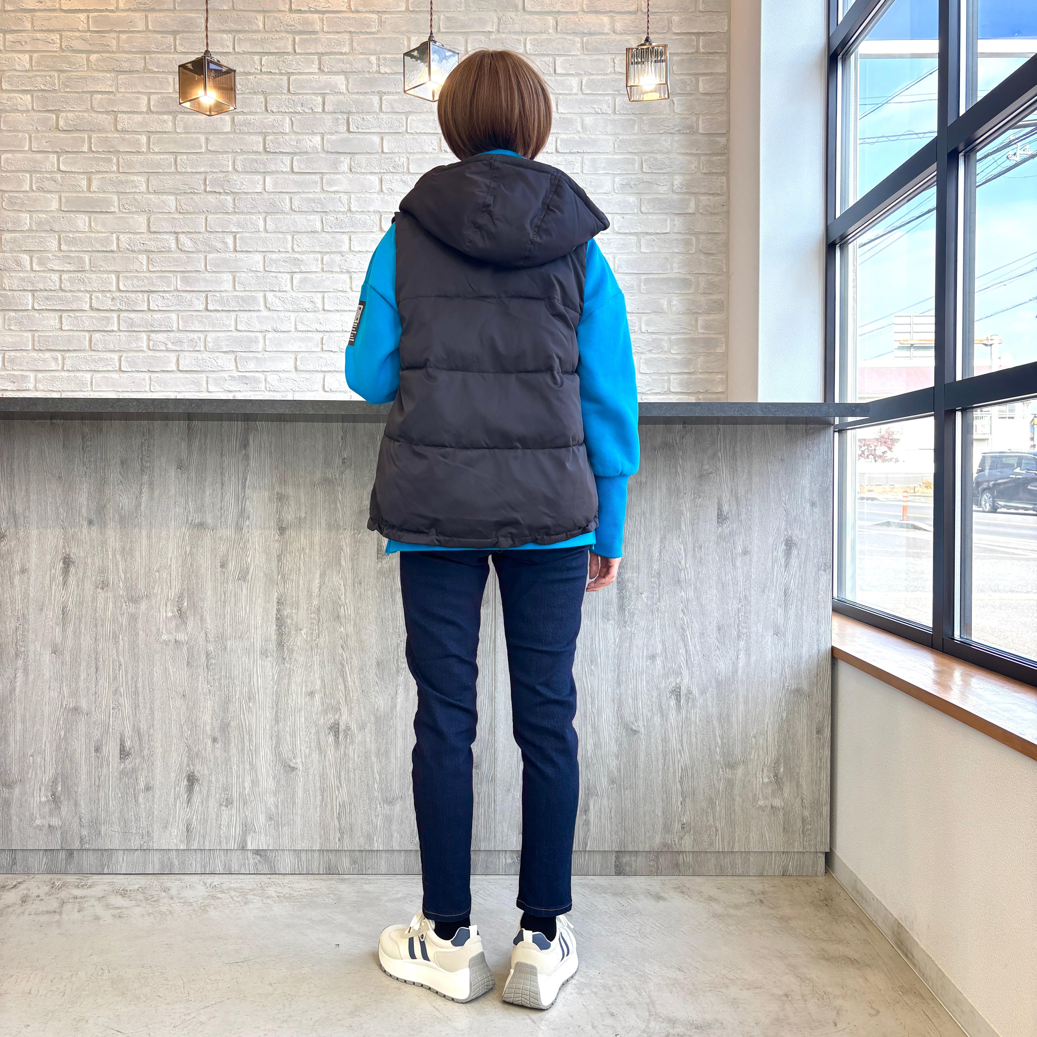ふっくらと暖かみのある パールダウン仕様したベスト。 お尻にかかる程の着丈で 裾はギュッと絞れるドロスト仕様で すっきりとしたスタイリングが叶います! 春アウターとしても着用出来ます♪ 【素材】表地、裏地、詰物 ポリエステル100% 【カラー】ベージュ、ブラック 【サイズ】M フリーサイズ相当 肩幅(㎝)37/身幅50/着丈59/63