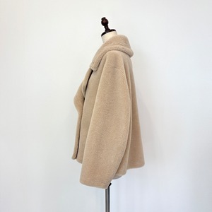 モコっとキュートなボア素材のPコート。 ゆとりのあるサイズ感で暖かい♪ 程よい着丈でワイドパンツ、スカート合わせと ボトムを選ばない着回しが効いて ジャケット感覚で羽織れるアウター。 【素材】ポリエステル70% アクリル19% ウール11% 【カラー】ベージュ 【サイズ】38 フリーサイズ 肩幅(㎝)57/身幅57/袖丈53/着丈58