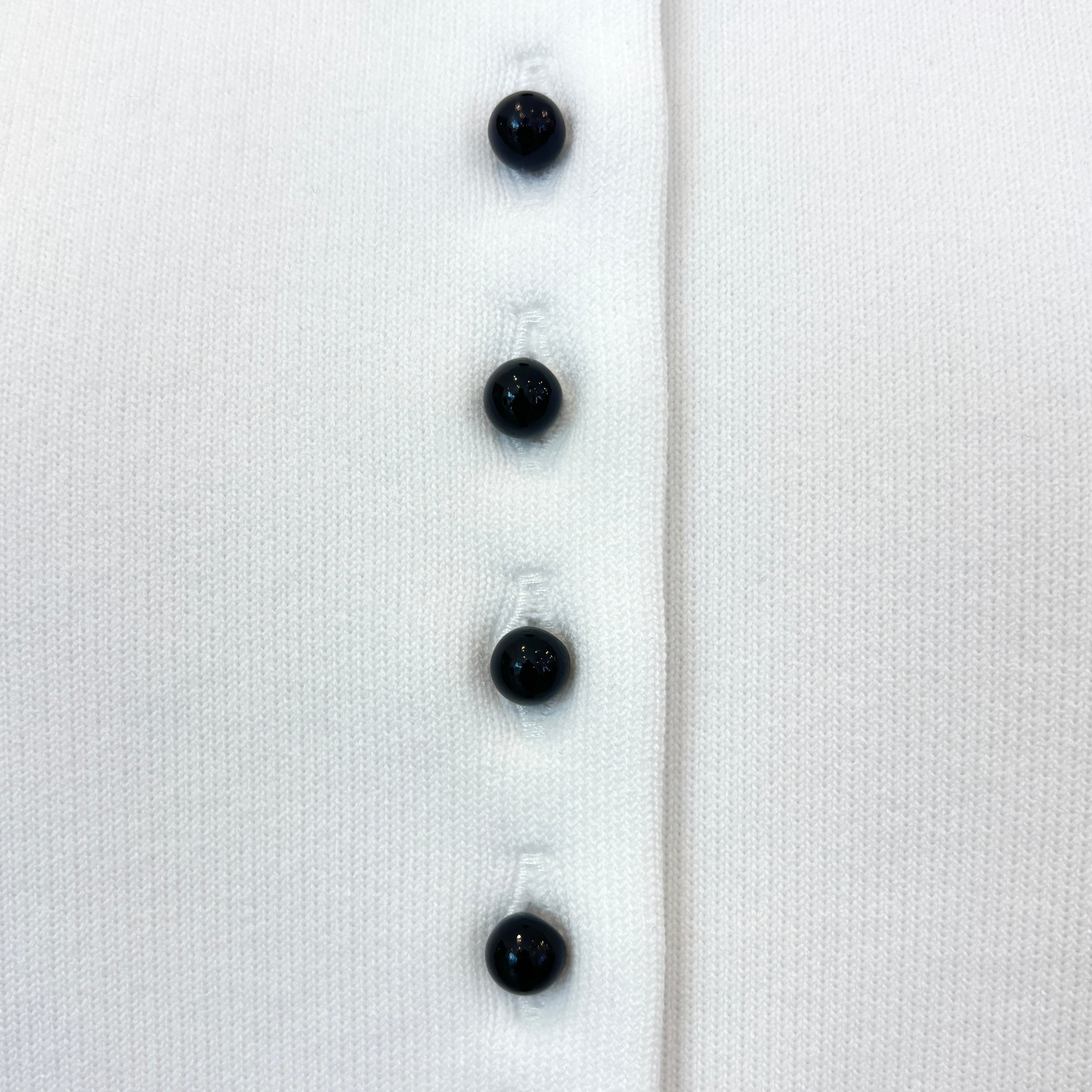 おしゃれのポイントとなるビーズボタンが、シンプルなデザインに華やかさを添えています。