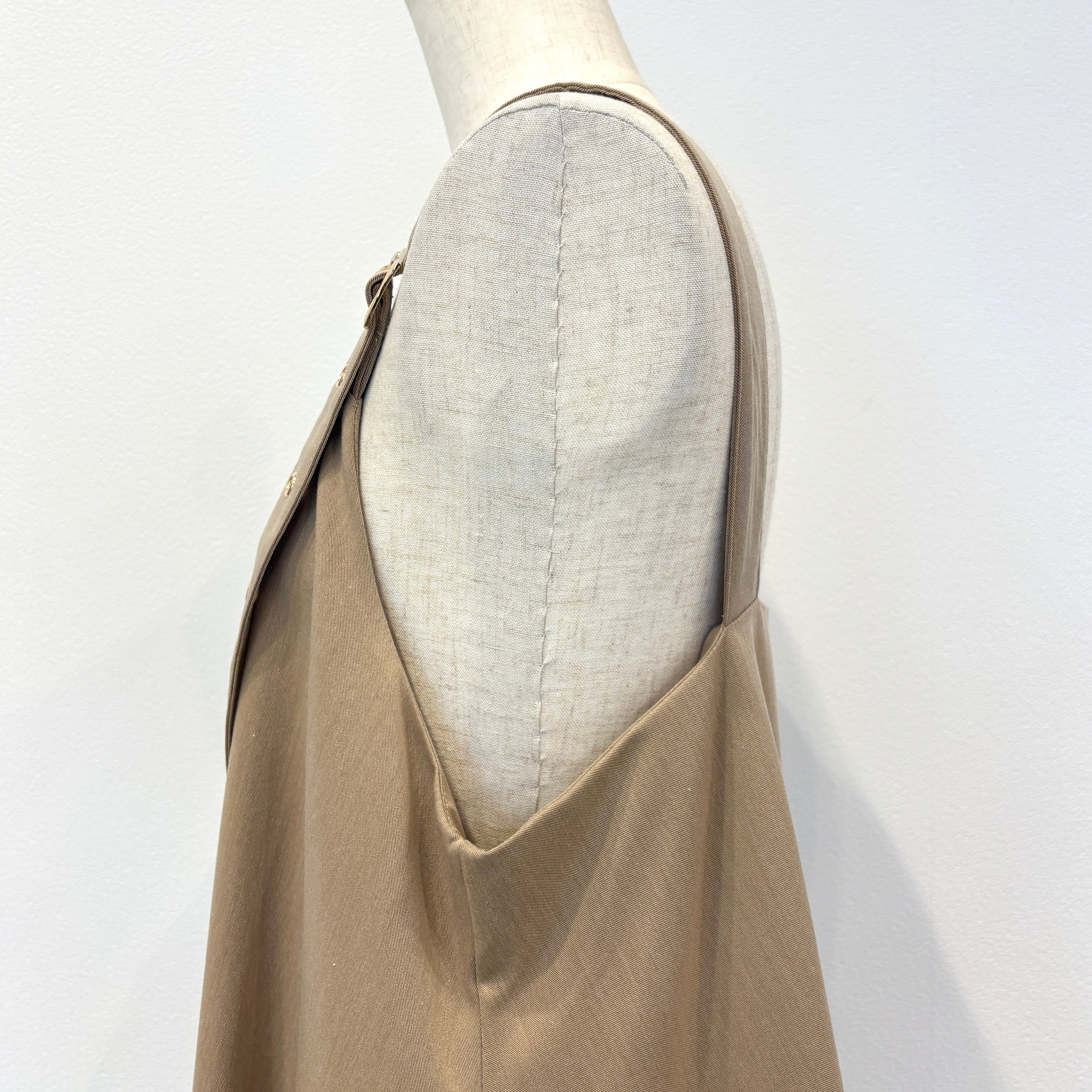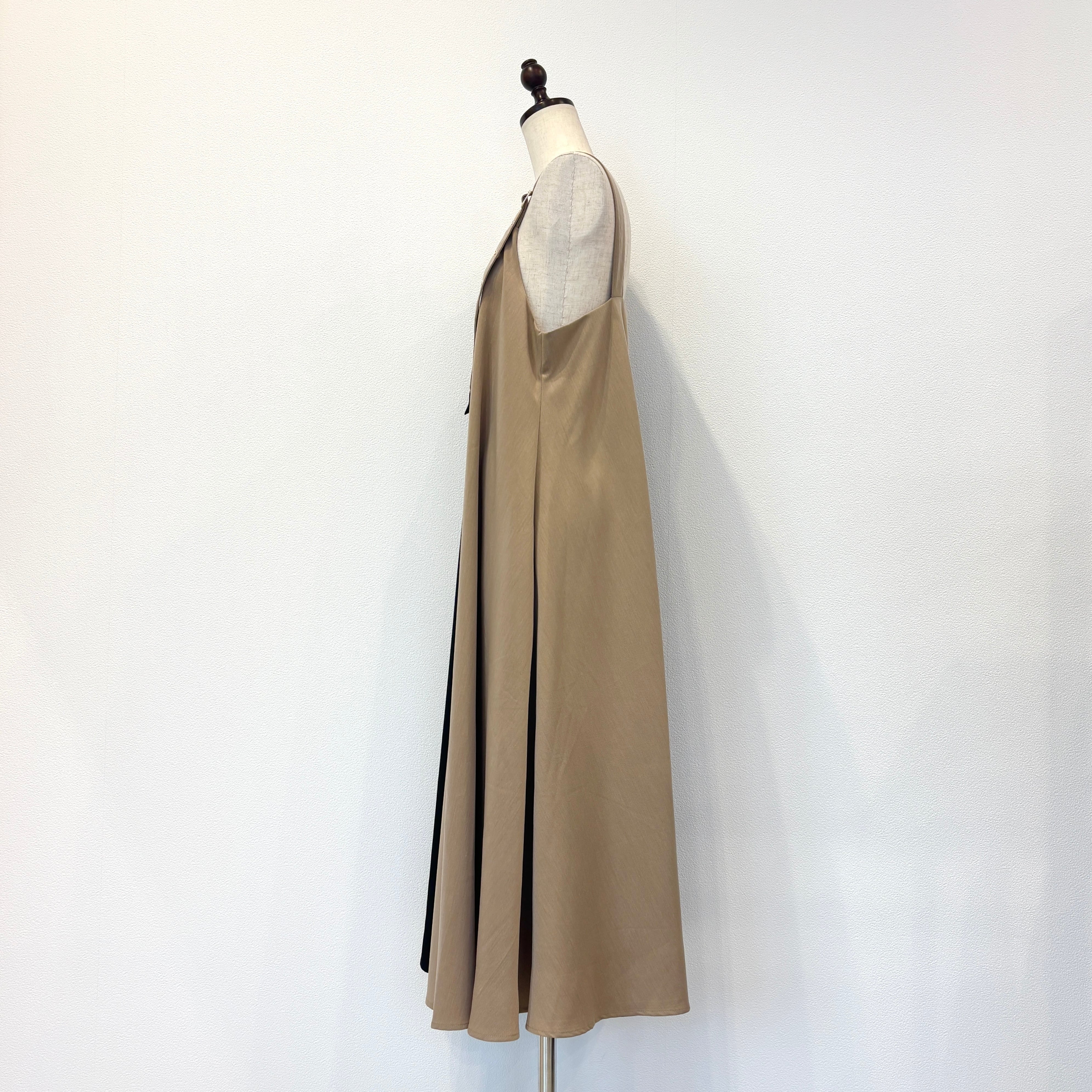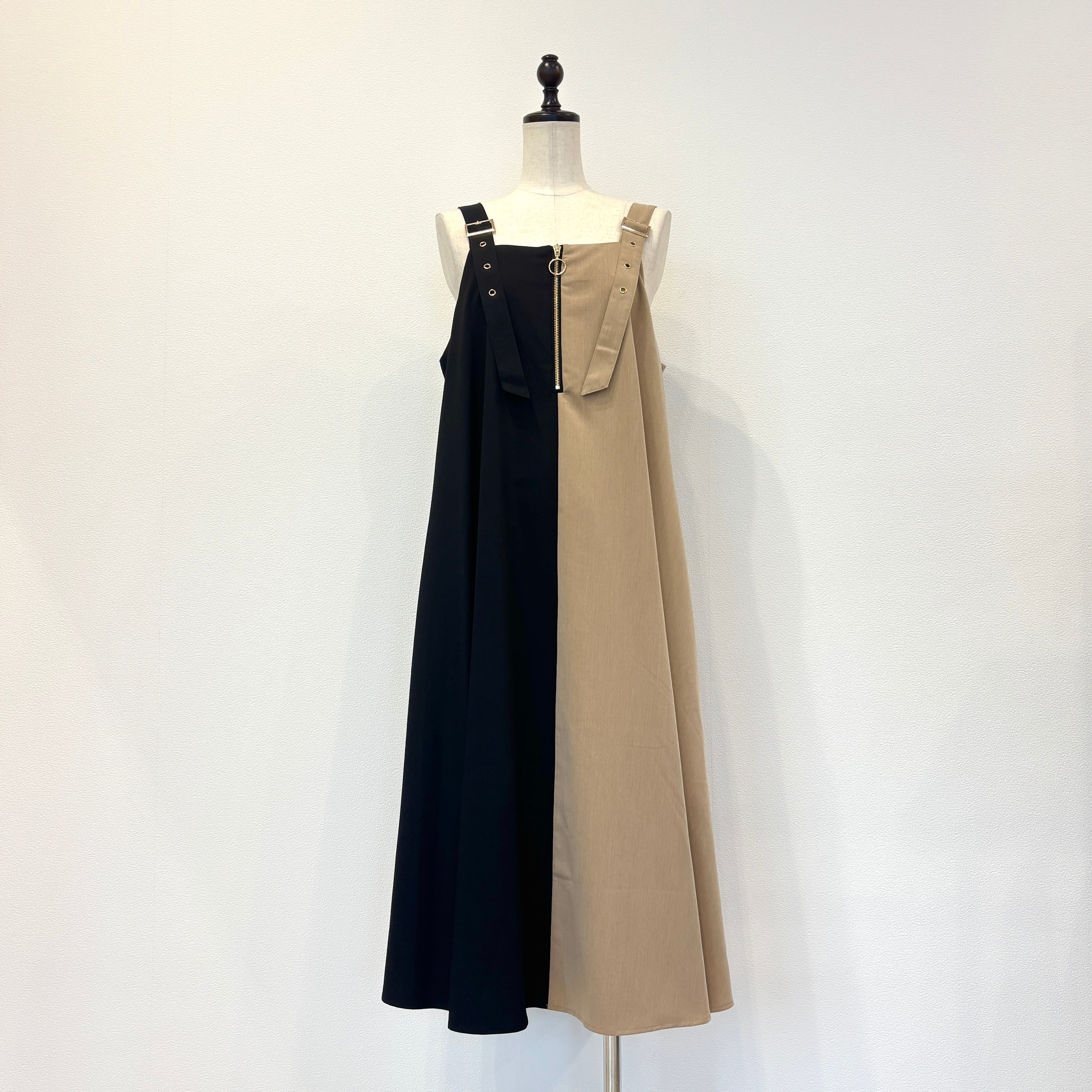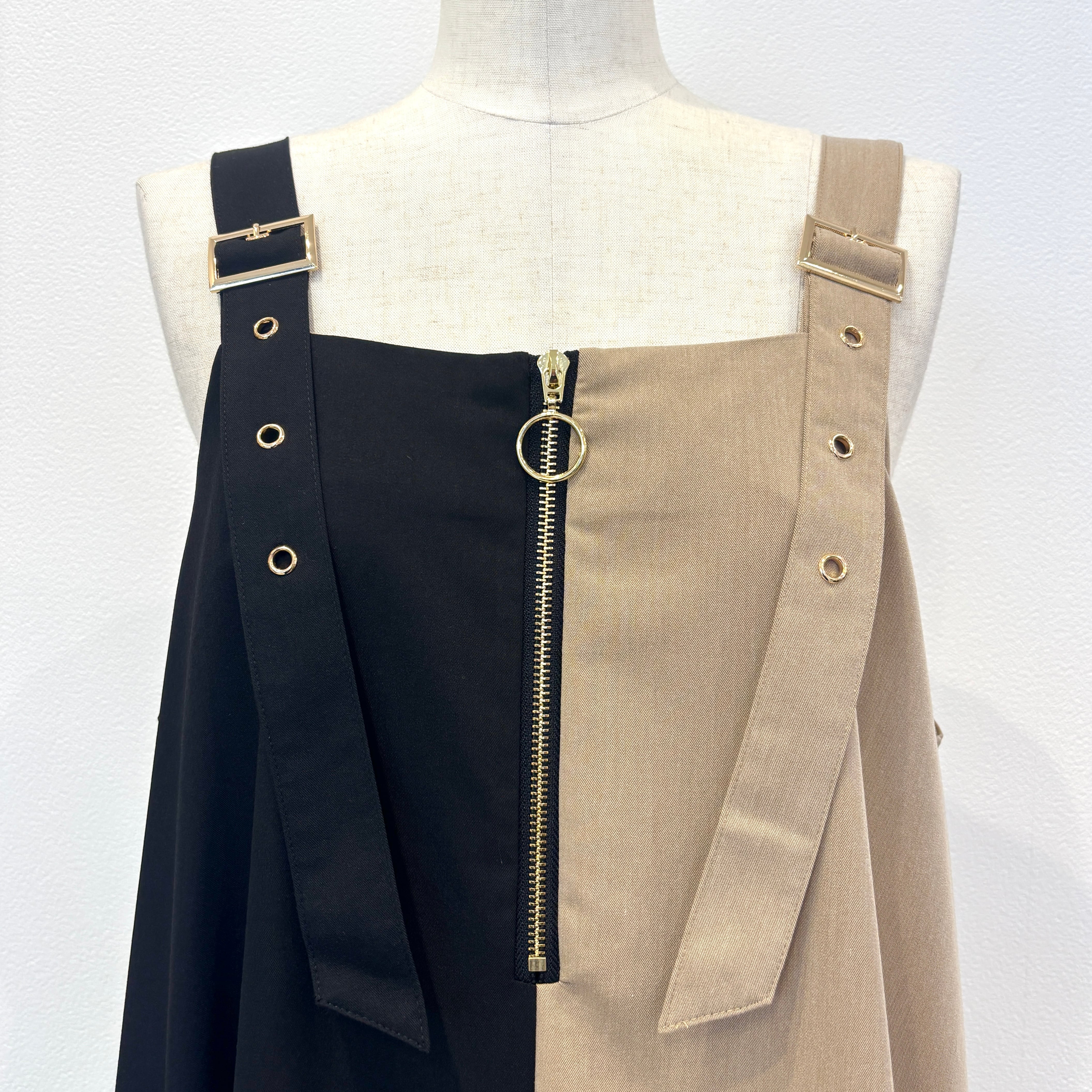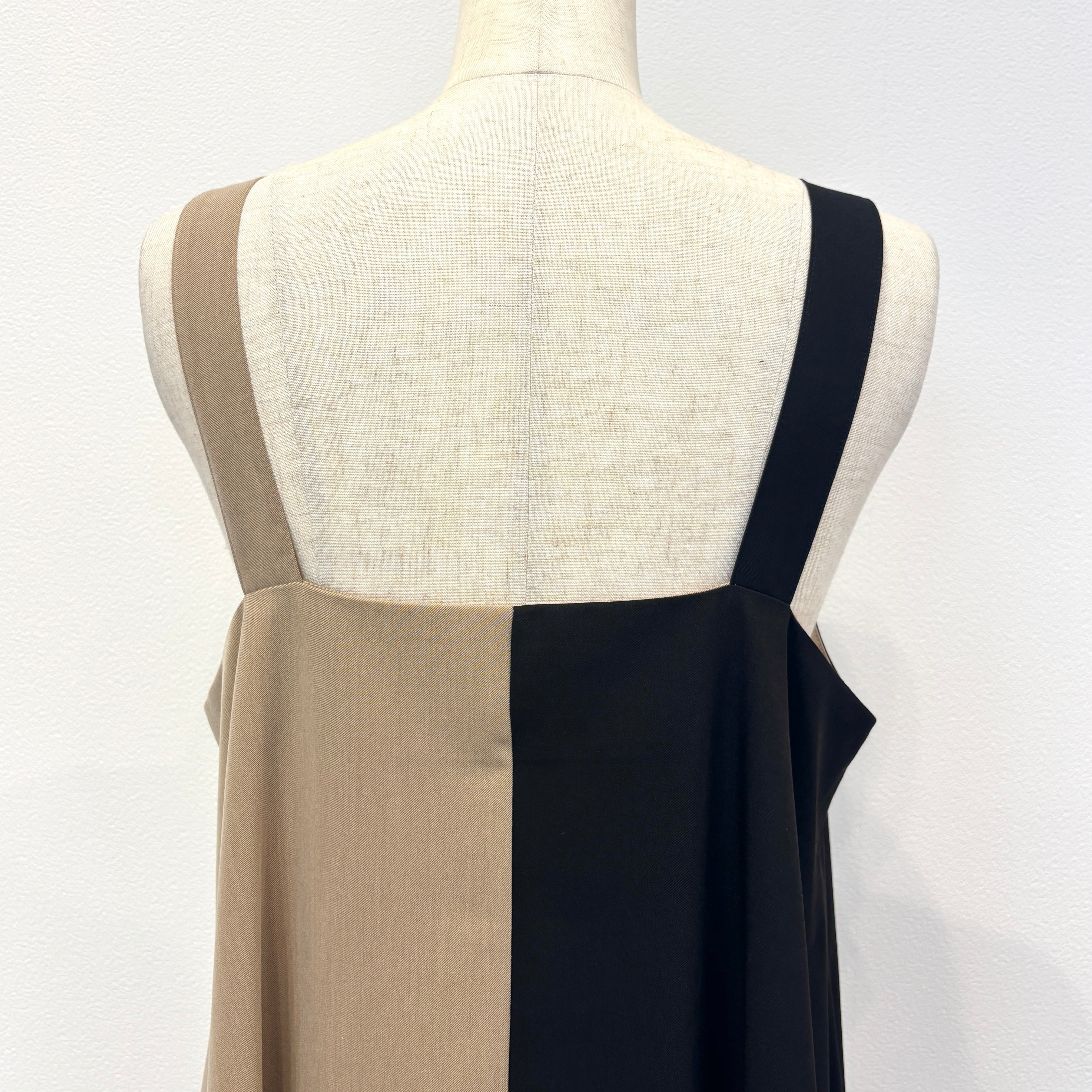 【素材】ポリエステル73% レーヨン21% ポリウレタン6% 【カラー】ベージュ×ブラック グレー×ブラック 【サイズ】フリー 身幅(㎝)51/着丈107(胸〜裾)